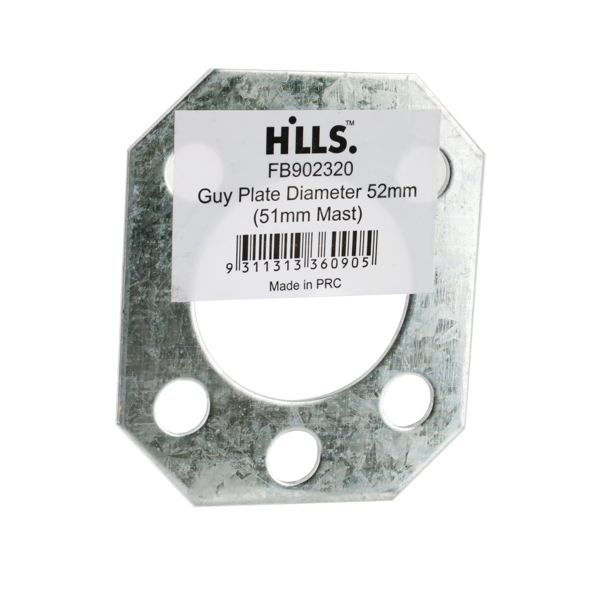 The Hills Antenna FB902320 guy plate is 52mm in diameter and suits a 51mm mast.