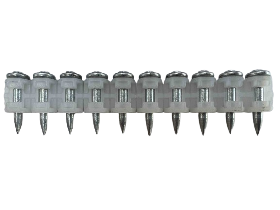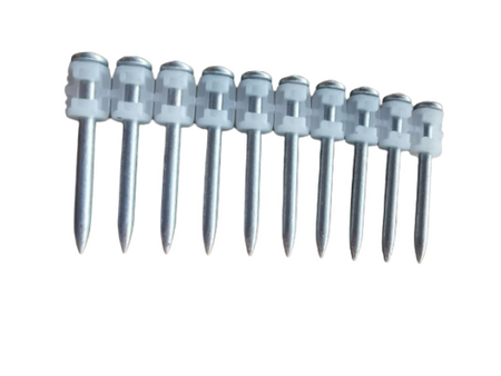 Hilti GX3/120 兼容钉子非常适合各种应用。这些钉子由 1060 钢制成,头部直径为 6.2 毫米,并采用白色塑料条包装。它们适用于混凝土和砖石,并有多种包装选项,包括盒子、袋子、纸箱和托盘。钉子经过镀锌处理,更加耐用,每条带 10 个钉子,钉杆直径为 2.7 毫米/3.0 毫米。