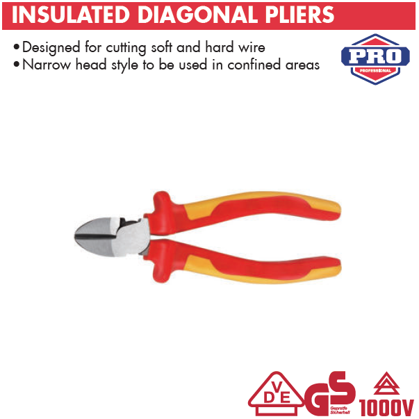 WORKPRO 的 160 毫米绝缘斜口钳是根据 EN/IEC 60900 标准制造的,并在 10,000 V AC 下单独测试并获得 1,000 V AC 批准。符合人体工程学的 2 组件手柄提供舒适的抓握,而窄头样式允许在狭窄区域使用。切削刃专为软线和硬线设计,硬度约为 45 HRC。