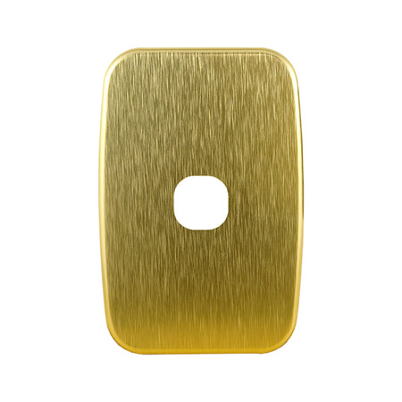 可选的拉丝黄铜电气盖板适合我们的 LUNA 系列电灯开关和电源点。