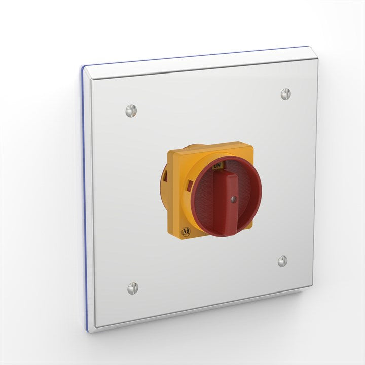 配有 Allen-Bradley 旋转隔离开关/隔离开关(63 A - 3 极 -查看规格)、带蓝色硅胶垫片的固定法兰、8 x 40 mm 自攻螺钉、DIN 导轨(配有安装的接地块和辅助装置)触点)、衬垫盖、外加盖固定螺丝、接地端子和接地线。