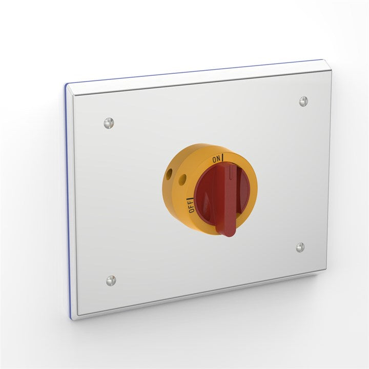 这款 IP66* 抛光表面齐平安装旋转隔离器外壳尺寸为 160 x 220 x 105(底盒高 x 宽 x 深毫米)/209 x 266(盖子高 x 宽毫米)。