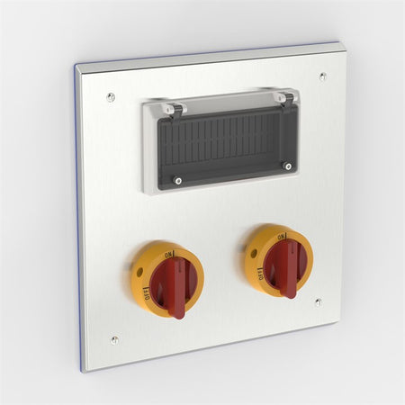 带铰链观察窗的 Electrix® 嵌入式旋转隔离器外壳采用 316L - V4A - 1.4404 不锈钢制成,配有开关,可实现更快的现场安装,带有铰链观察窗,可更轻松地接触 DIN 导轨安装的 MCB、RCD和 RCBO(未提供)。
