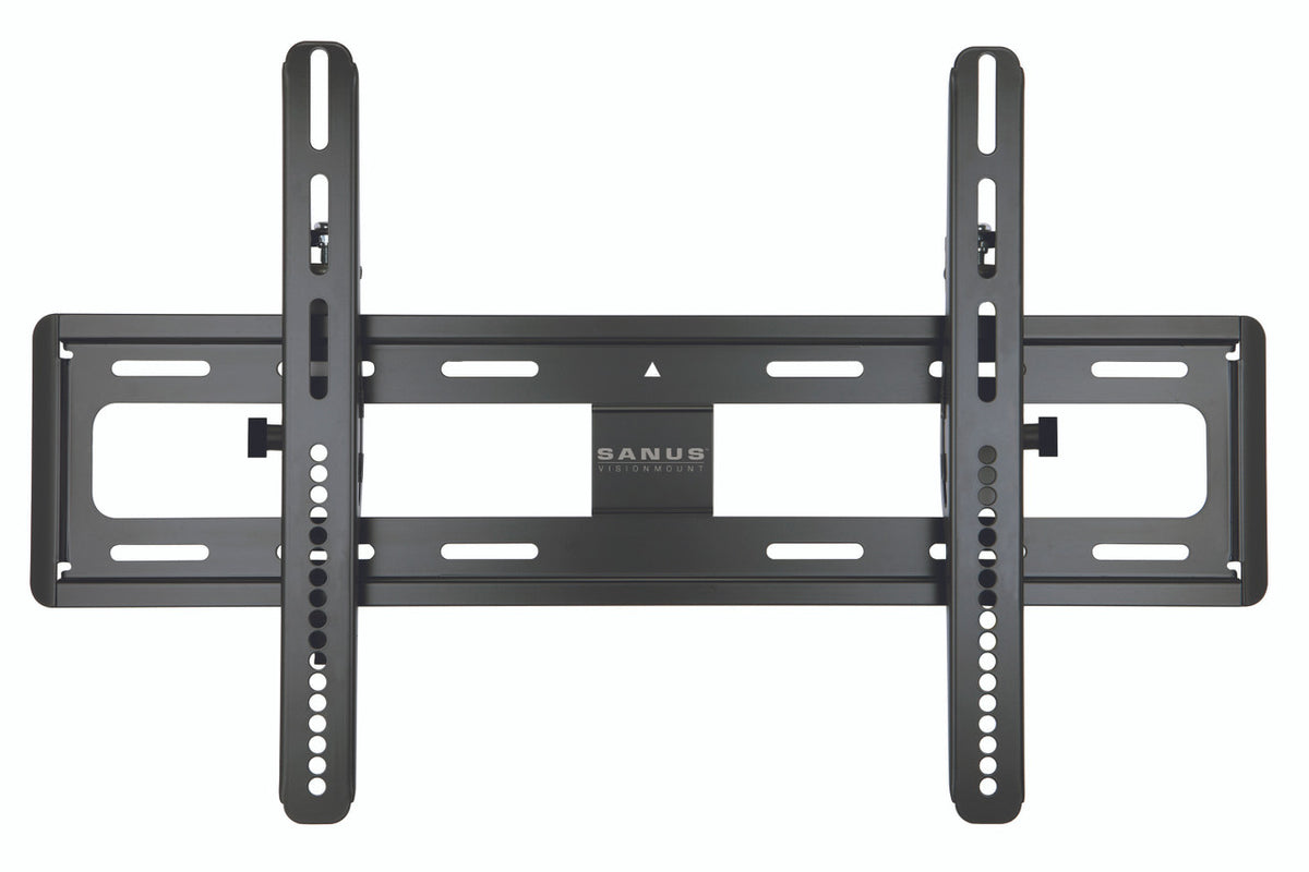 The SANUS VMPL50A is a tilting wall mount for 32" – 85" flat-panel TVs. SANUS’ Virtual Axis™ tilting system provides easy adjustment of viewing angle with just the touch of a finger. ProSet™ post-installation height and leveling adjustments ensure TVs are always perfectly positioned after hanging. Its solid heavy-gauge steel construction offers a sleek, high-tech look while providing strength and durability. Adjustable TV brackets offer lateral shift ability to allow perfect TV placement, even with off-center wall studs. TV is positioned just 1.8" / 4.57 cm from the wall for a clean, low-profile appearance. Universal mounting pattern fits virtually any LCD or plasma TV up to 150 lbs / 68.18 kg. Mount now fits TVs 32” – 85”, and all current VMPL50A models have been tested for compatibility with the updated size range.
