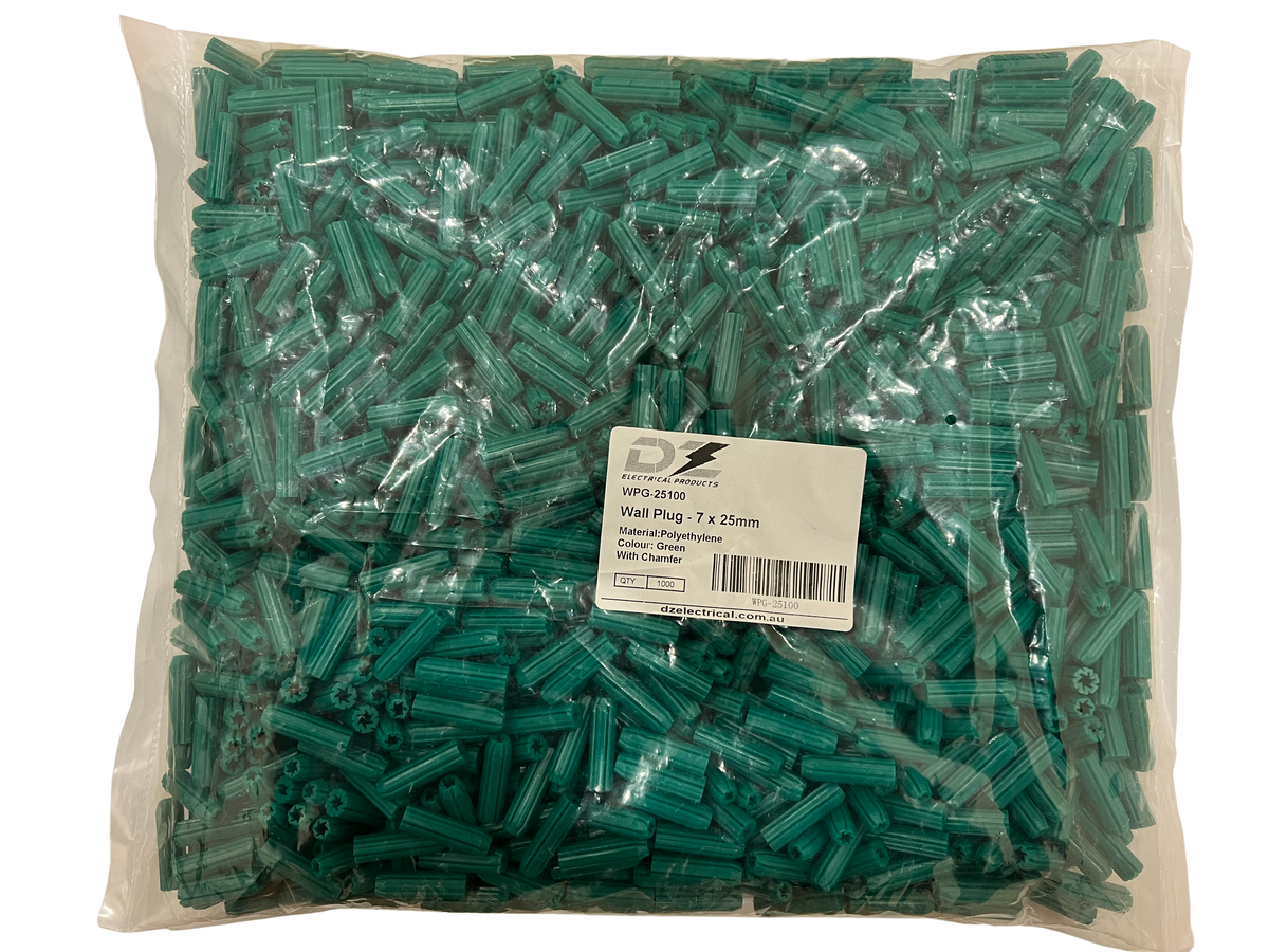 DZ Electrical 的 Wall Plug 是一种用于砖和混凝土的轻型固定装置。它由聚乙烯制成,钻孔尺寸为 6.5 毫米,墙上插头尺寸为 7 毫米 x 25 毫米。适用于10-12号螺丝。