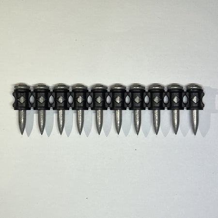 Maximize your fastening efficiency with our X-U MX Concrete & Steel Pins, specifically designed for the Hilti DX Series Gun. Each pin is crafted from high carbon steel and features a galvanized surface for enhanced durability. With a head diameter of 6.2mm and shank diameters of 2.7mm/3.0mm, these pins are perfect for securing into concrete and masonry. The black plastic strips hold 10 pins each, ensuring quick and easy loading. Available in various packaging options, including box, bag, carton, and pallet, this 1,000-piece set meets all your heavy-duty fastening needs.